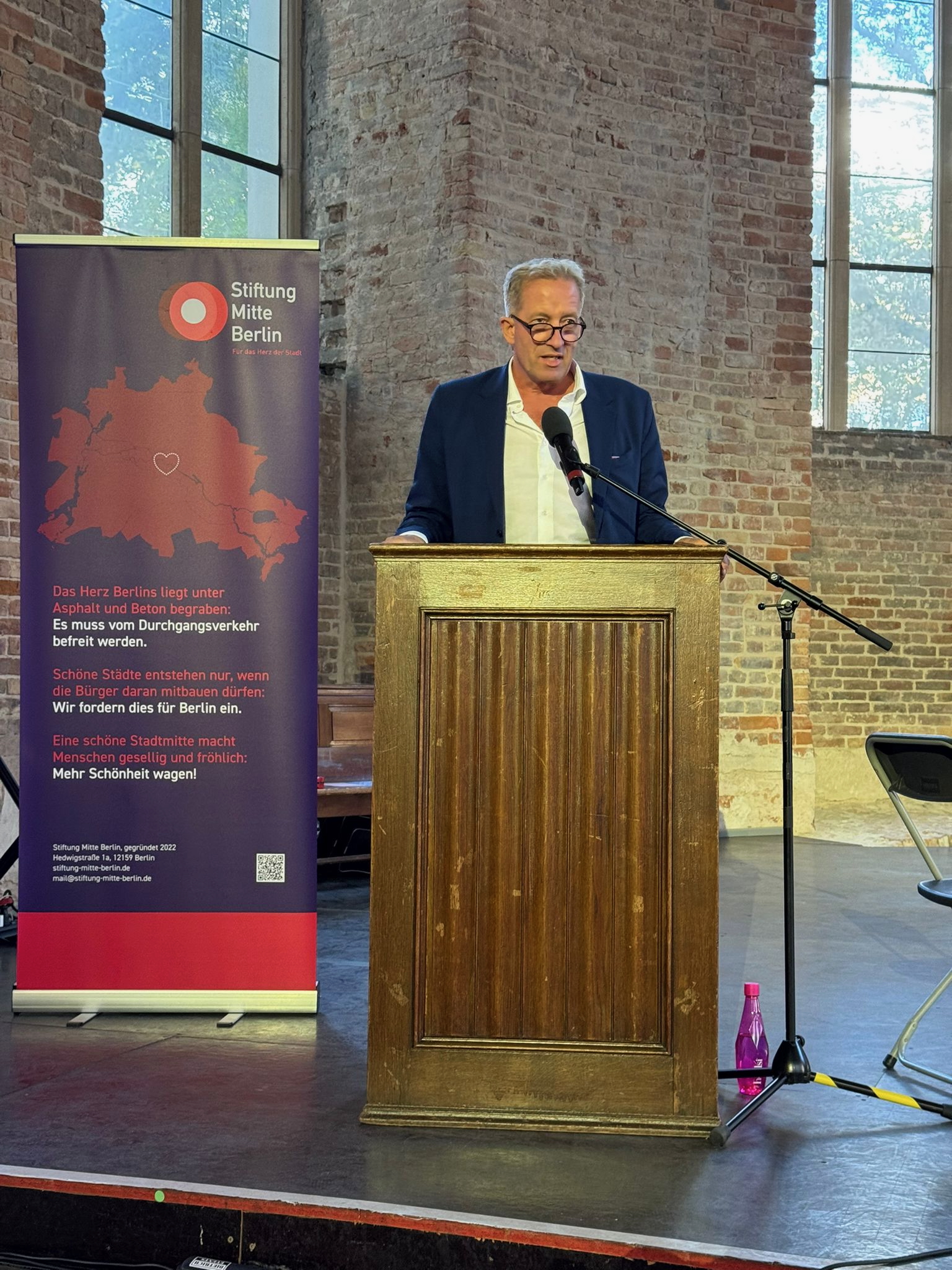 Die Berliner Mitte ist mehr als ein Ort – sie ist eine Aufgabe. In diesem Sinne hat die im letzten Jahr mit 93 Jahren verstorbene Unternehmerin und Autorin Marie-Luise Schwarz-Schilling im Jahr 2022 die STIFTUNG MITTE BERLIN gegründet. Es geht der Stiftung darum, die Mitte Berlins, die heute vor allem aus Asphalt, Betonpflaster und Leerflächen besteht, wieder mit schönen, lebenswerten und kleinteiligen Wohn- und Geschäftshäusern zu bebauen – nach dem Vorbild der neuen Altstädte in Potsdam, Dresden und Frankfurt am Main – ein weiteres Vorbild ist der Rückbau der autogerechten Stadt in Paris. Fußgänger, Anwohner, Gastronomie, Kultur und Einzelhandel müssen auch in Berlin in großer Zahl in die Mitte zurückkommen, damit die ehemalige Altstadt wieder wichtig für die Stadtgesellschaft wird. Wir setzen uns auch deshalb für einen nachhaltigen und schönen Städtebau ein, weil der öffentliche Stadtraum der Begegnungs- und Handlungsraum unserer Demokratie ist. Wir streben baulich gefasste öffentliche Räume an, in denen sich Menschen aus aller Welt unabhängig von ihrer Herkunft und ihren finanziellen Möglichkeiten begegnen.